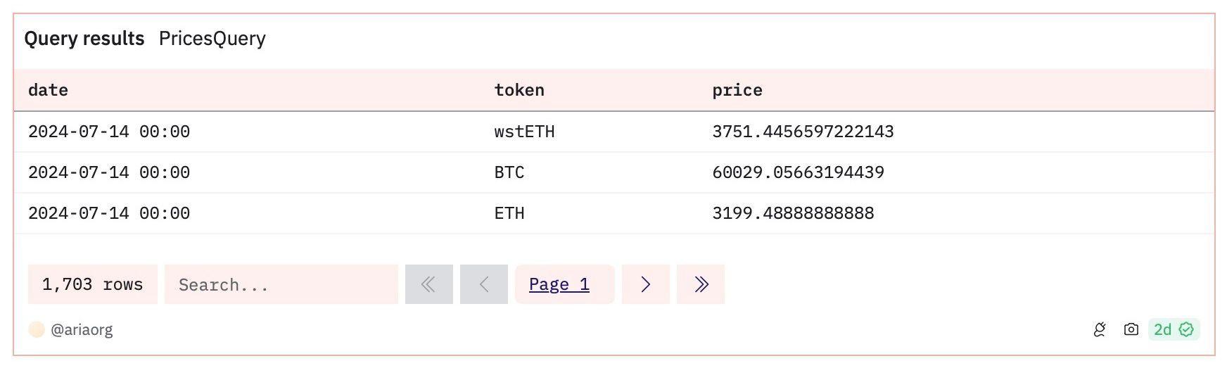 Due to SQL length restrictions on Dune, we need to combine several queries to create the final chart. Therefore. I created a separate query for historical prices using the prices.usd_daily catalog. Since prices are updated multiple times daily, I selected the median price for each day to ensure accuracy.